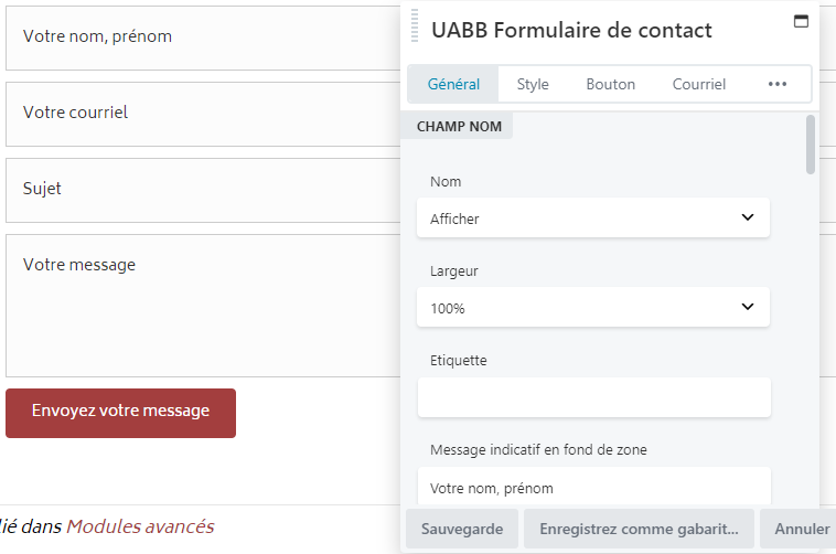 Dans l’onglet «Style», vous aurez accès aux options de modifications pour les champs de saisie.